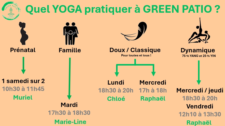 obligatoirement votre cours, et à l'annuler au plus tôt si besoin ! Réservation sur le groupe Whatsapp "Green Patio" (ou par téléphone pour votre 1er cours, Raphaël vous ajoutera ensuite si vous souhaitez continuer).